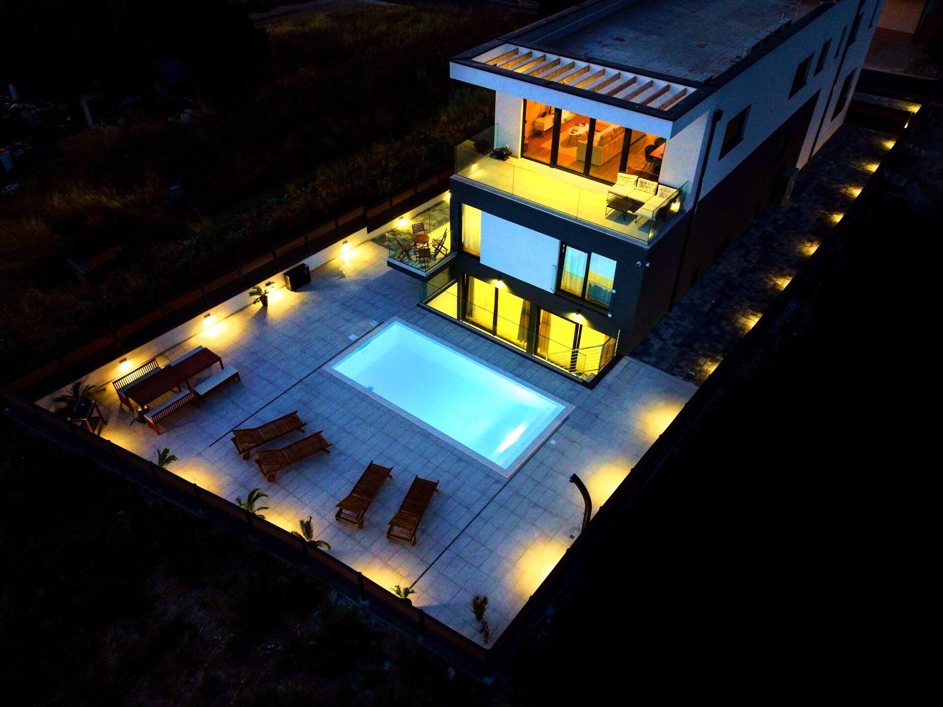 Our Villa has everything you need for comfort holiday. Spacious outdoor relax zone for all guests includes: hot tub, heated pool with salt water and waves for swimming or massage (25-30 C water temperature all year), sun-beds, sun umbrellas, outdoor shower and outdoor kitchen: grill with long outdoor dinning table, sink, outdoor fridge for cold drinks and closet for grill utensils and dishes.