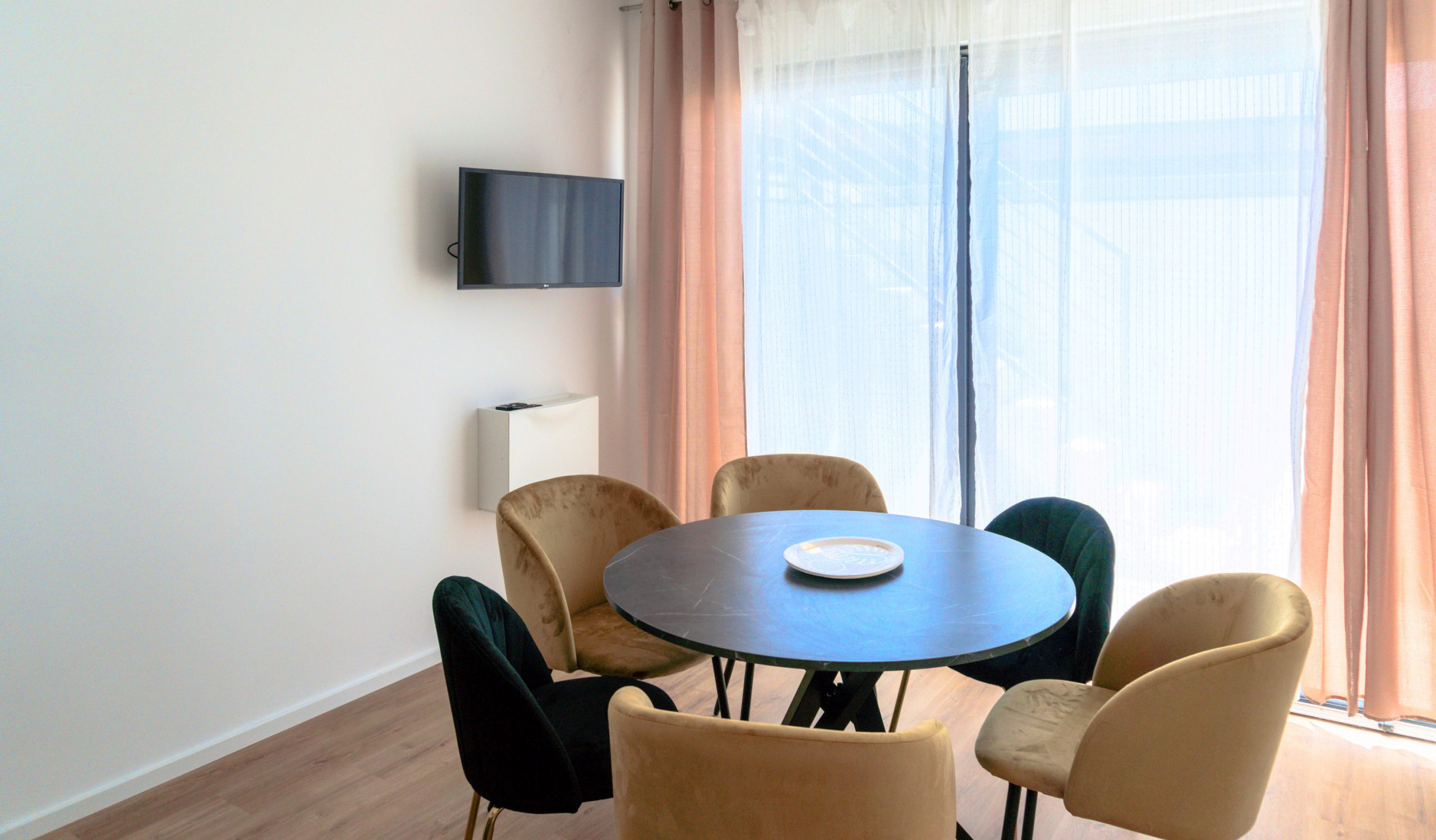 Everything is in walking distance: 3 min. beaches, 5 min. shop&bakery, 7 min. restaurants, 10 min. main bus station, 15 min. pharmacy, 20 min. walking on sea promenade to old town center. Parking is on property under surveillance cameras. It is 15 min by car to airport and 5 min to ferry. All 5 apartments are airy and comfortable with brand new furniture and equipment.