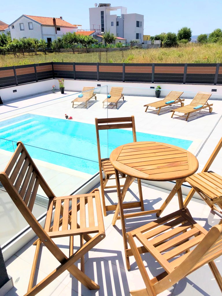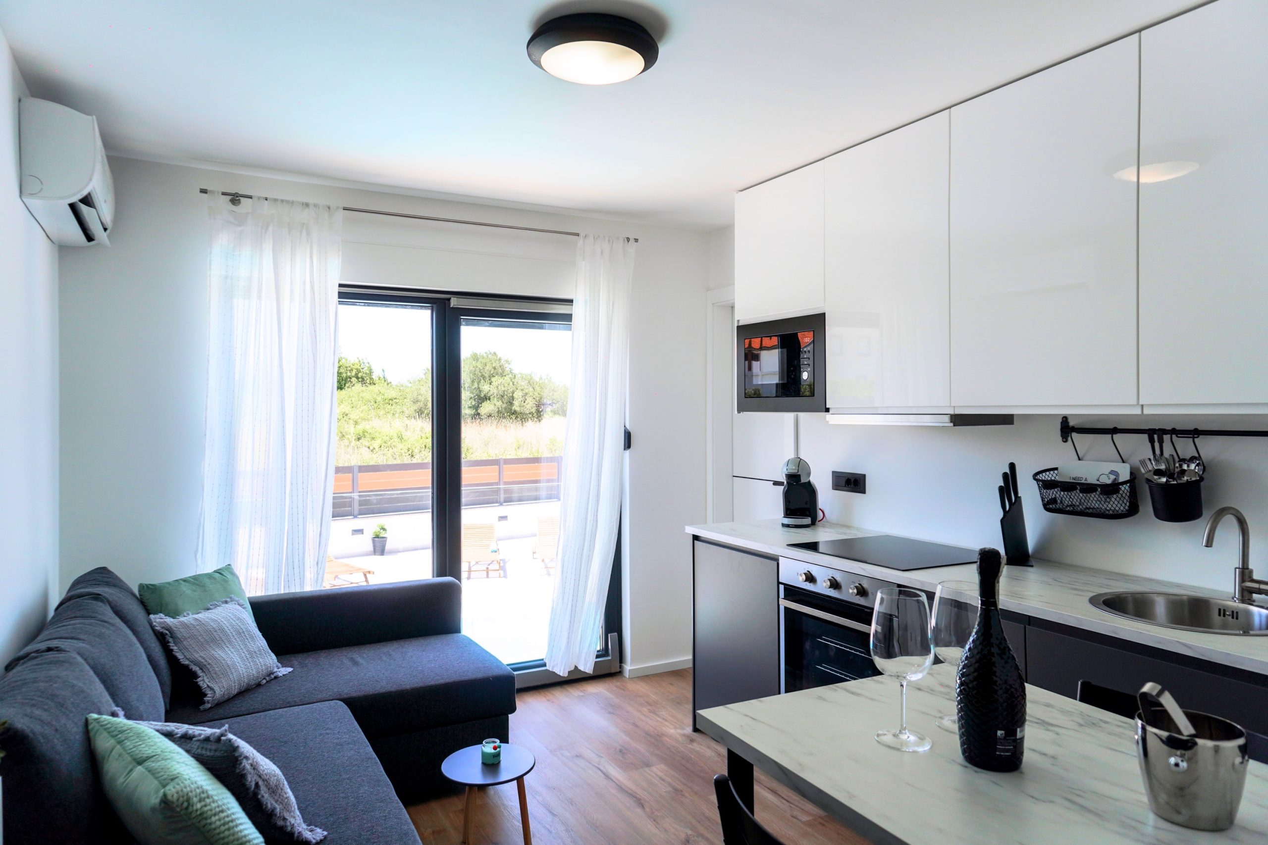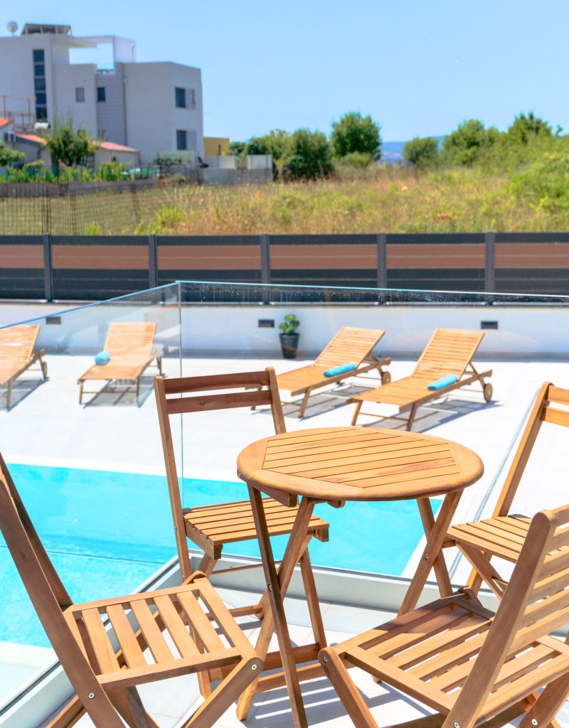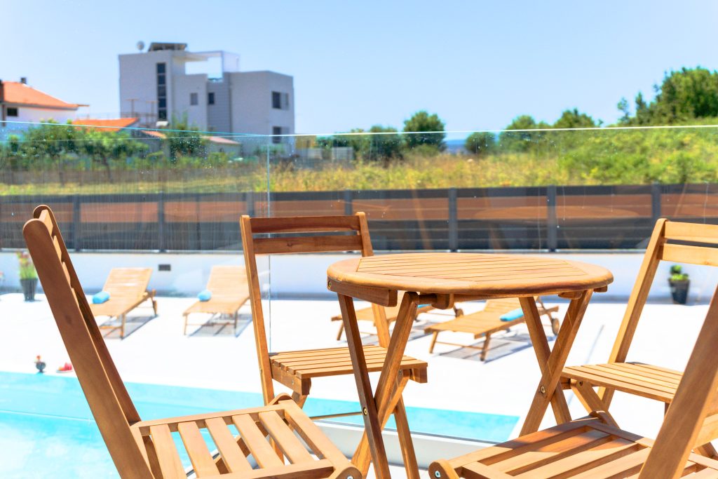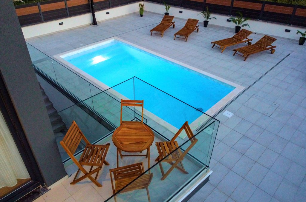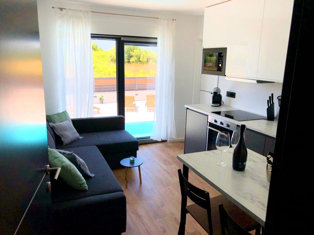 Welcome in private & serviced Blue Apartment, which has romantic balcony overlooking the swimming pool with sea view. Blue apartment is ideal for 4 people. You will love its romantic balcony, when in the night blue color from crystal clear pool water shines all over the apartment.